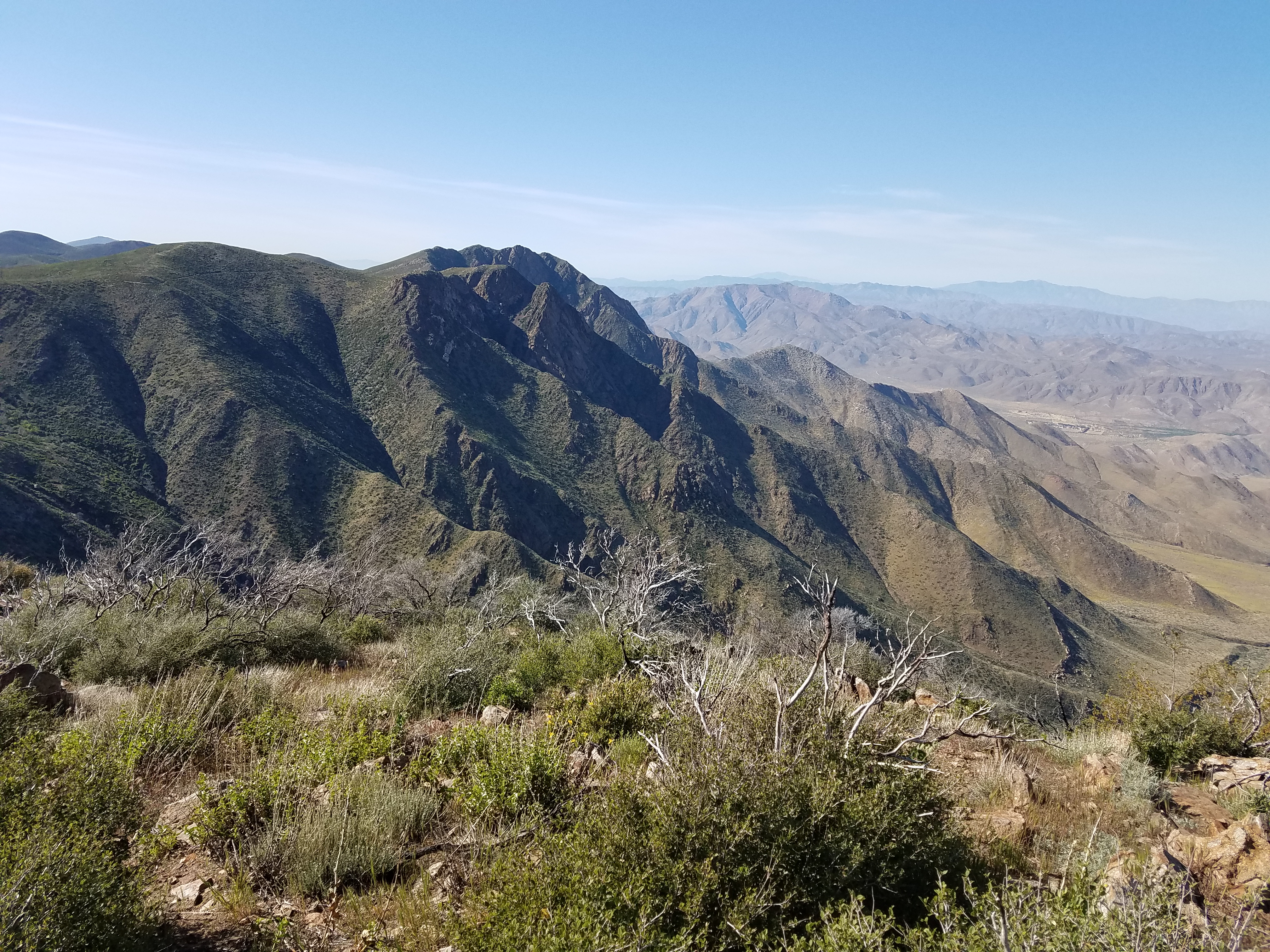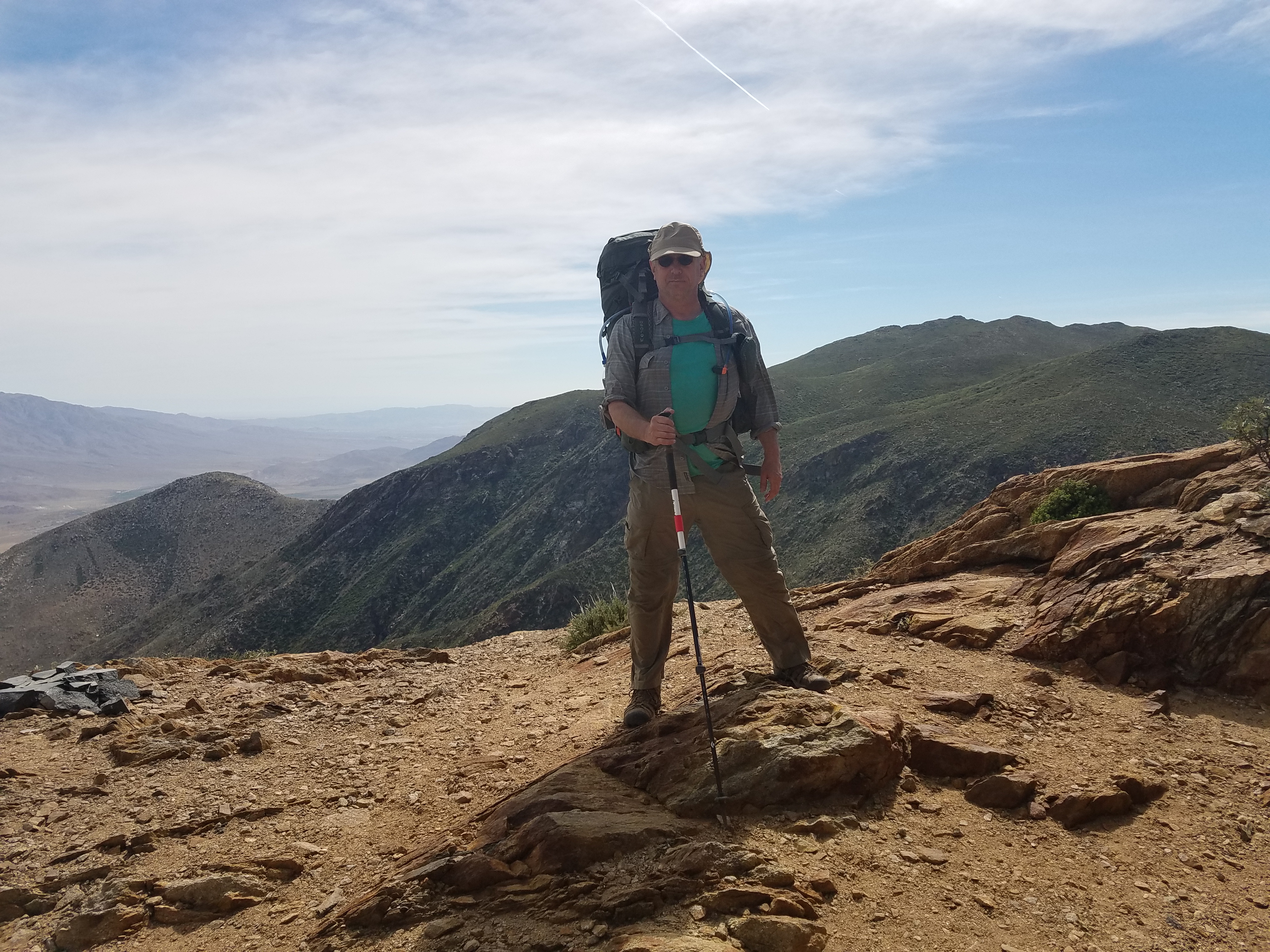 After that Marco and I headed out. Mt Laguna is like an oasis in the desert. At 6,000 feet it has stands of tall pines that were a welcome break from the scrubby growth in the desert. As we climbed the wind picked up. In one pass it was so strong it was hard to stand. We camped just off the top of a ridge and had a tough time setting up tents because of the wind. It was at about 5,500 feet and had an awesome view. I thought it was a great idea, then through the night the wind got worse. A little wind is nice, this wasn’t. I was afraid the tent poles would break and the noise and rocking kept me awake most of the night. So yes, my tent was a-rocking but only because the wind came a-knocking.