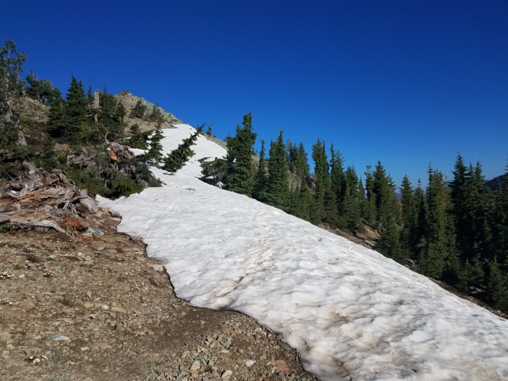 More pretty lakes and rugged mountains today. The trail stayed between 6500 and 7000 feet all day, generally following contour around the peaks. I started walking at 7am and had 24.6 miles in by 6pm.